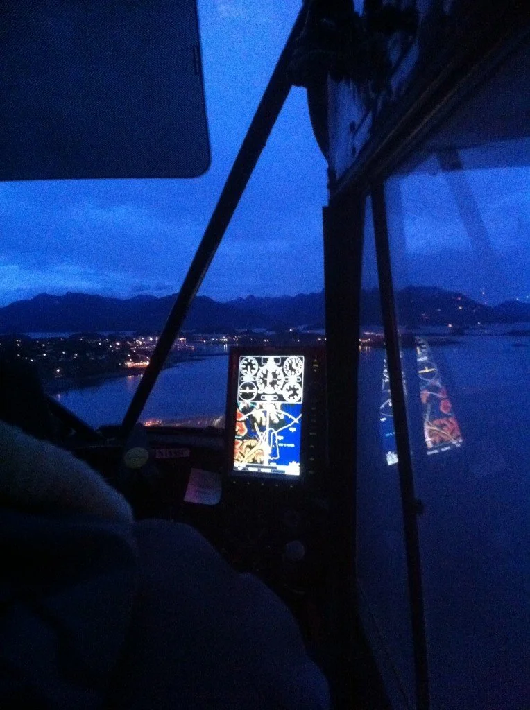 The way back this world removed her top. Sitting in the back of the Super Cub – a plane I once heard described as a two-seater kayak with wings – as the sun set, and no photos seemed to make it work, finally making it into town, landing on the glassy, protected water of the sound – it felt good.